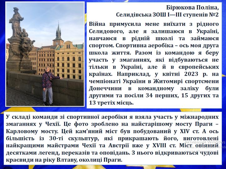 - Бірюкова Поліна (Селидівська ЗОШ І-ІІІ ступенів № 2);