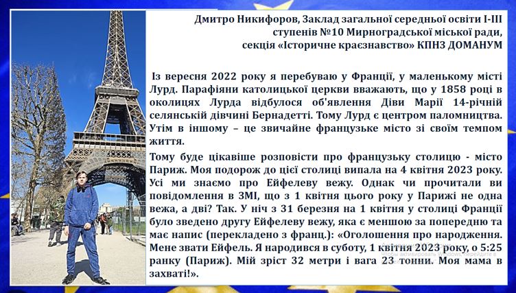 До Дня Європи вихованці секцій і гуртків КПНЗ «Донецька обласна Мала академія наук учнівської молоді» підготували есе «Мої враження від життя та освіти в європейських країнах». Публікуємо витяги з цих есе.