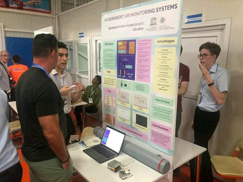 Артем гідно презентував дослідницький проект та виборов «Бронзу» (секція «Математика та комп’ютерні науки»). Його розробка це портативний пристрій , який дає змогу отримати поточні дані про забруднення будь-якого місця на карті світу. Для достовірності даних школяр використав технологію Blockchain. Винахід у п’ять разів дешевший за наявні аналоги, які коштують понад $100.