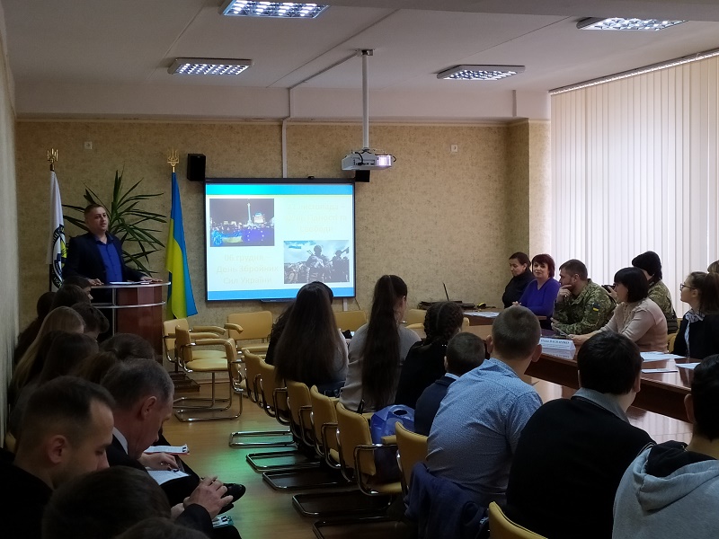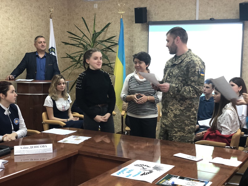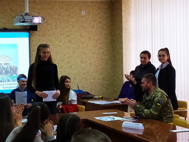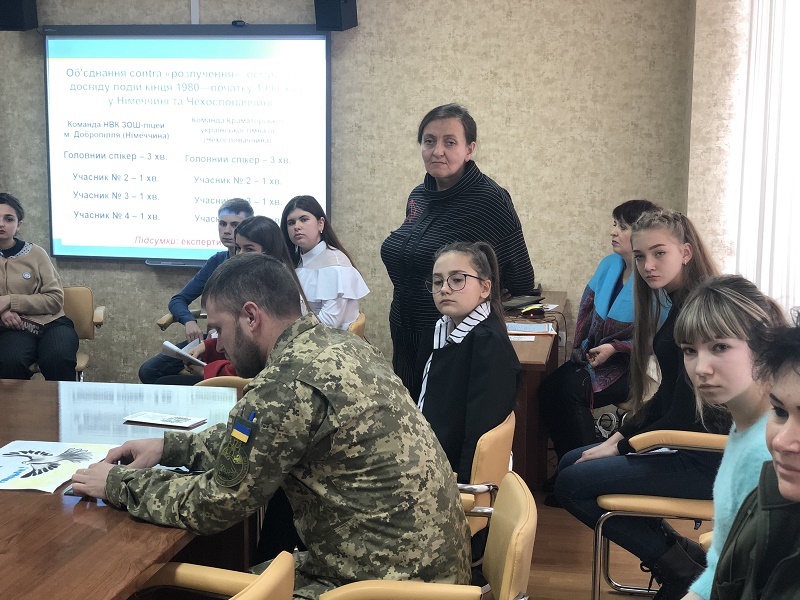Щороку наприкінці листопада – на початку грудня український народ відзначає два свята: 21 листопада – День гідності та Свободи, 6 грудня – День Збройних Сил України. Для обговорення питань історичного досвіду та перспектив подальшої боротьби українського народу за власну державу, її європейський вибір у засіданні дискусійного клубу зібралися юні науковці - учні закладів освіти міст Добропілля, Краматорська, Мирнограда, Покровська, Слов’янська та переможці й учасники обласного конкурсу пошуково-дослідницьких робіт «На захисті України: від козаків до кіборгів».