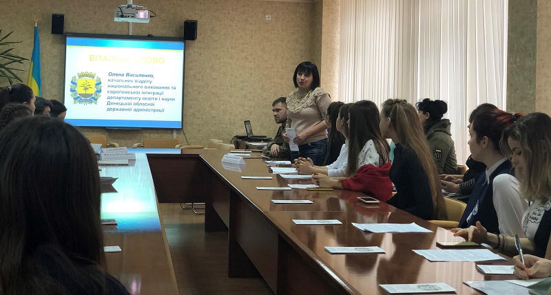 Начальник відділу національного виховання та європейської інтеграції департаменту освіти і науки Донецької облдержадміністрації Олена Василенко розкрила передумови виникнення Революції Гідності та зазначила, що українці демонструють вищий патріотизм, оптимізм, громадянську відповідальність та активність.